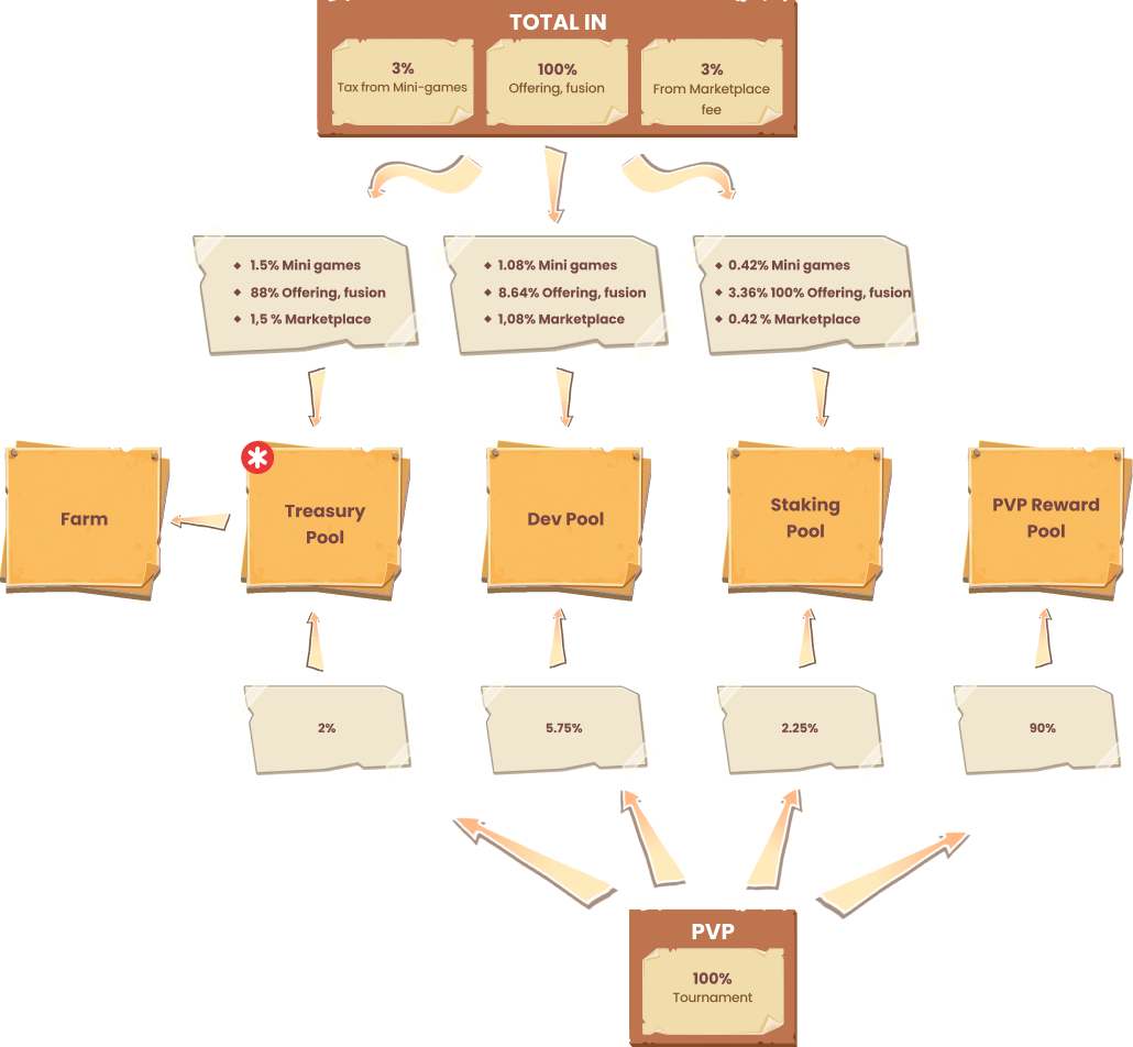 Receive your share of revenue from all sources (Offering, market Fee, mini games)